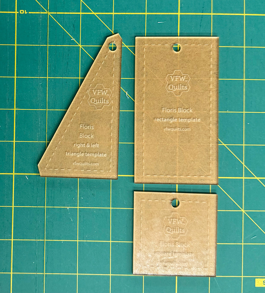 NEW! By Popular Request.... The Floris template set can be used to make a 6"x 6" or 12" x 12" finished block with a geometric floral design. The 3-piece acrylic...