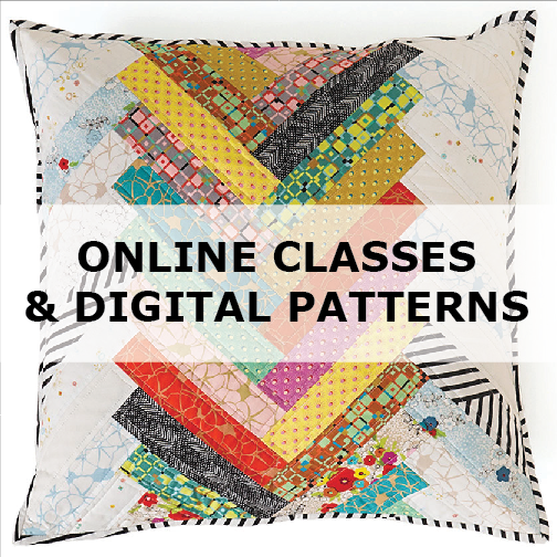 PLAY with fabric strips to create this optical illusion, road map-inspired quilt, featuring my bright print fabrics on a white solid background (RJR cotton supreme solids). Pattern pieces are included for...