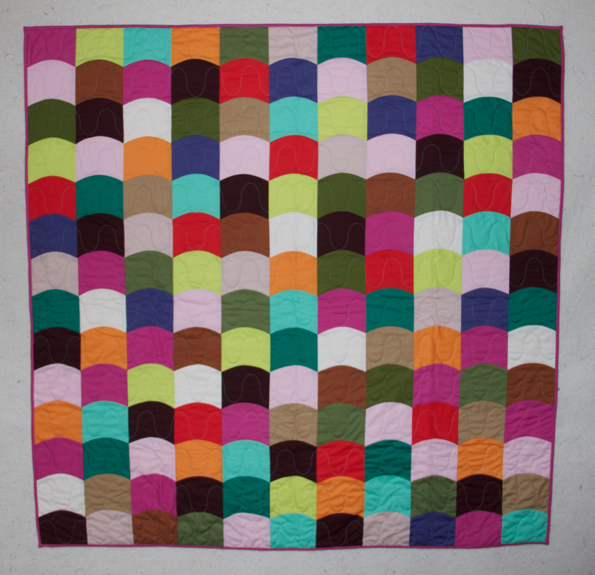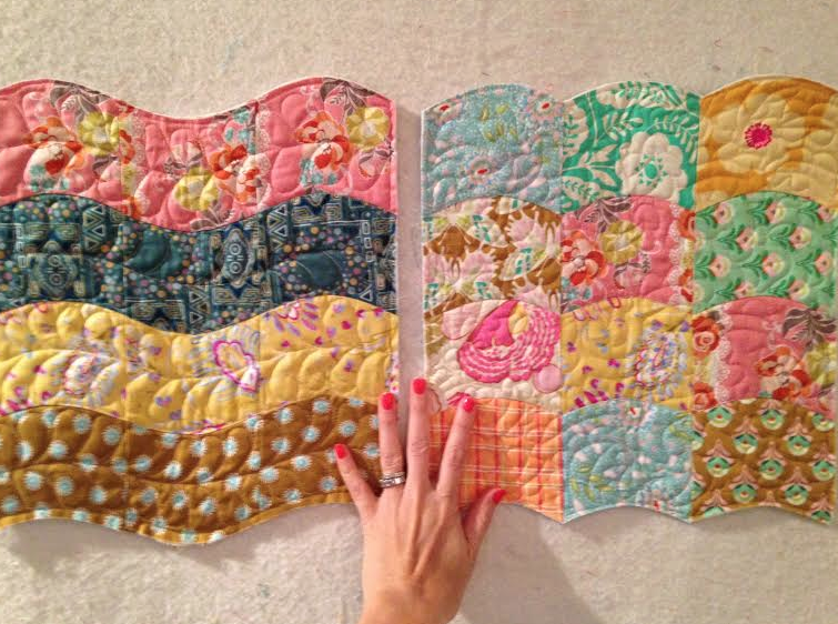 Instead of flip flopping the shape, Here I sewed the curves together to make columns, then sewed the strips together... Picking out the solids was so much fun!