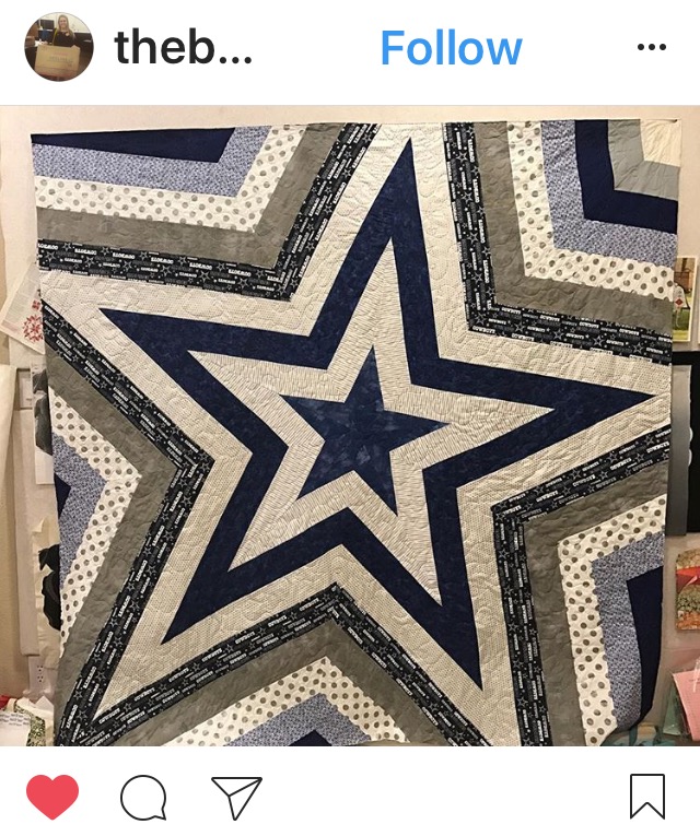 Don't you just love this Dallas Cowboys quilt? She also made the yellow, pink and orange one below that! Made by: Thebootscootinquilter ( Instagram images) She said :
