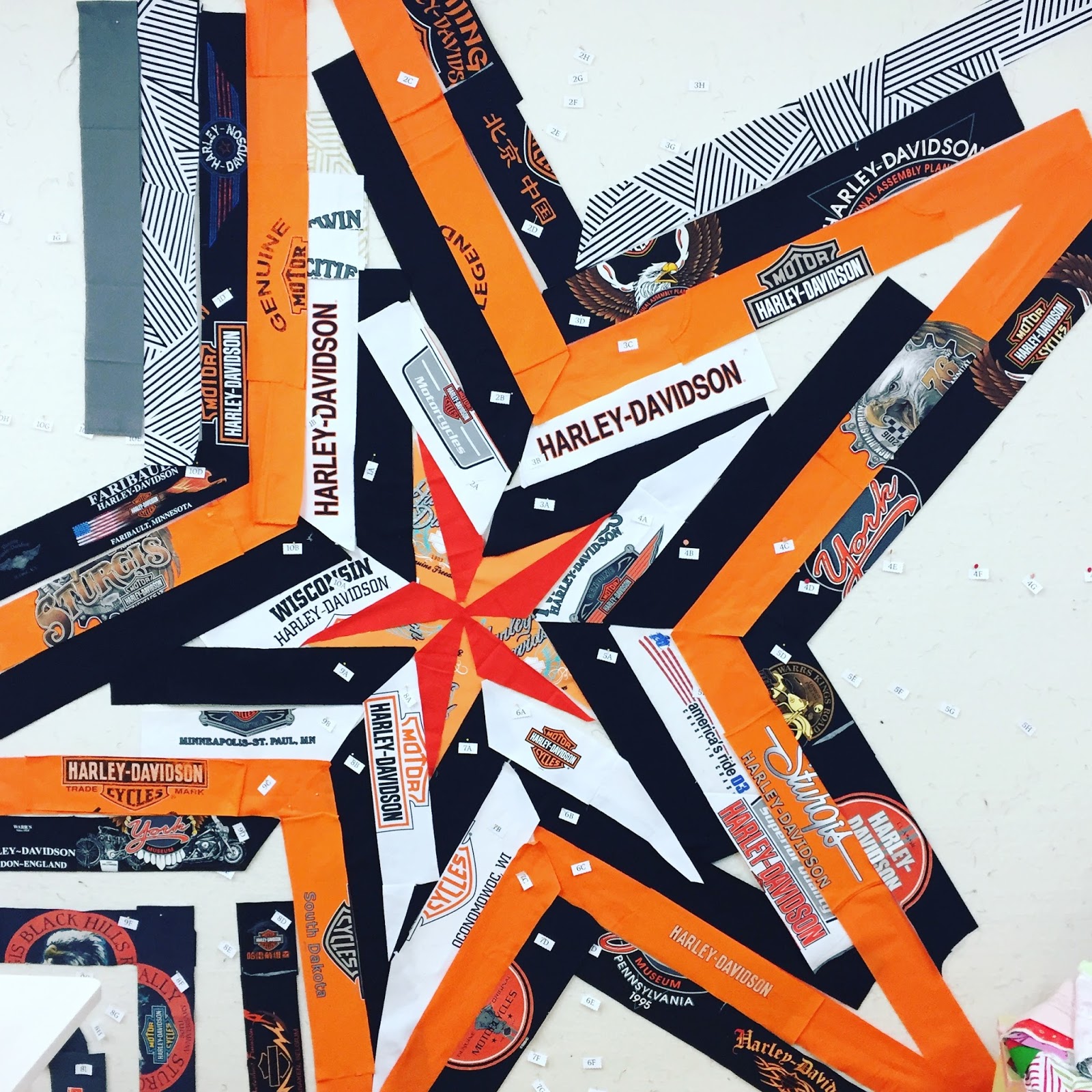 I've been slowly building my Harley T-Shirt Quilt. I love that T-shirt quilt shave such a Stigma attached them as being sometimes goofy, but this is proof you can do Amazing Quilts with them! CUT THEM UP!