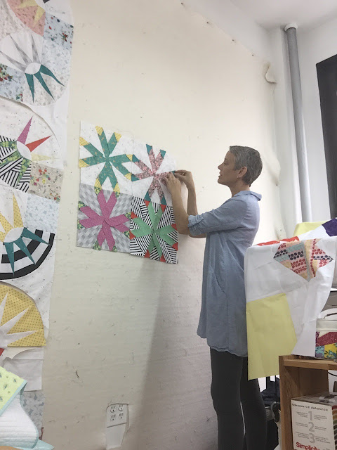 I came back to a clean studio! (Very Briefly! I fly to Paducah Wednesday!) So I had to break into my MEADOW STORM fabrics! Time to play! My Victory Block set is my current FAVORITE to play with. SO many options with this block, today I was playing with piecing all the parts... ( you also get a full triangle if you didn't want to piece the bits...)