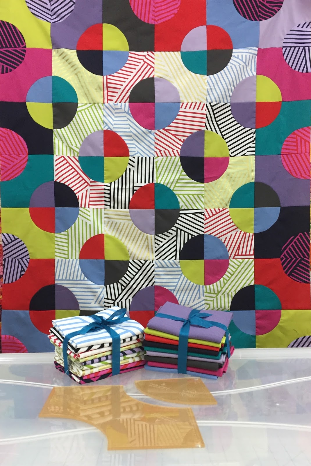 We now have a 7" finished BOW TIE acrylic set in the VFW quilts webshop and NYC retail store! We made this quilt up this past week, as we got inspired by using the SOLID Manor bundle to go with the MANOR STRIPES bundle! Perfect for a baby quilt!