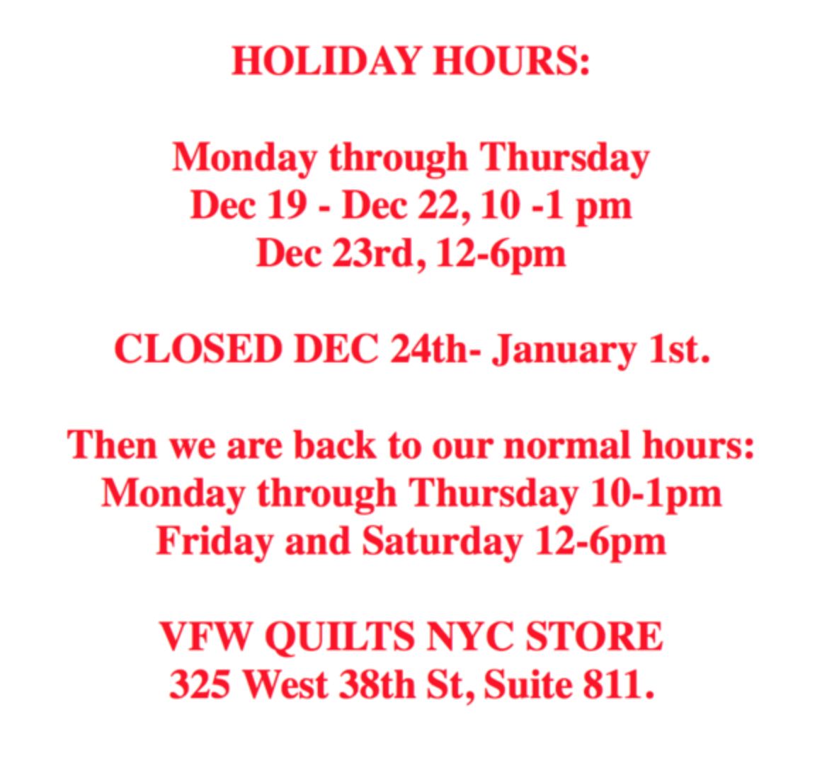 *Any orders placed at vfwquilts.com during our holiday closure, will be shipped January 2nd, 2017