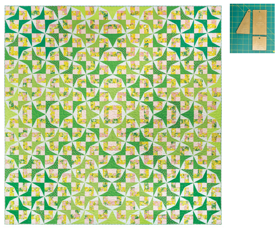 A charming design with my new advanced double wedding ring template set, Pickle & Star, using both pieced and solid arcs and a mix of brightly colored stars between the rings. Enjoy...