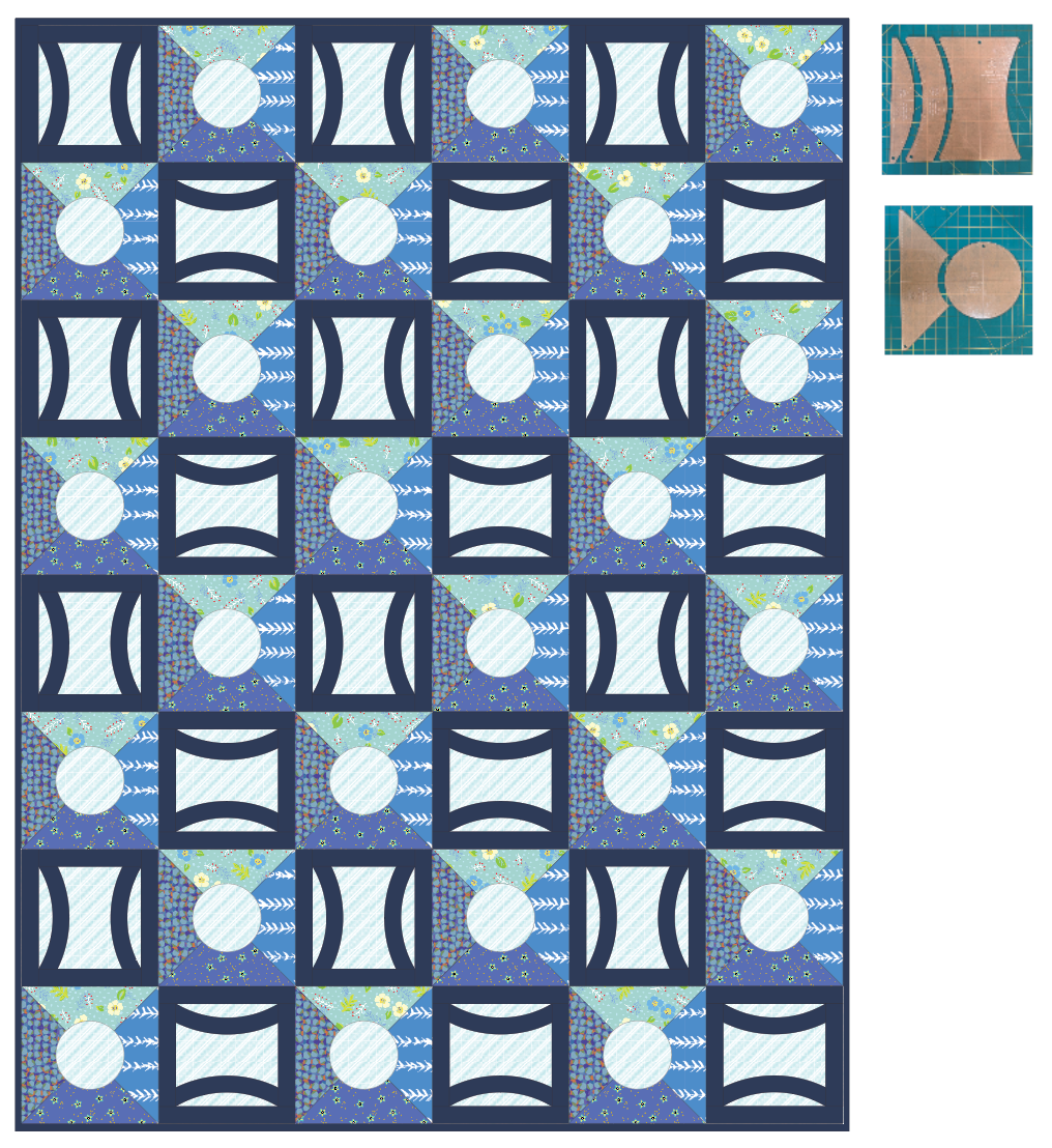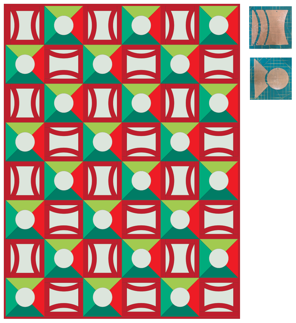 A charming design with my new advanced double wedding ring template set, Pickle & Star, using both pieced and solid arcs and a mix of brightly colored stars between the rings. Enjoy...