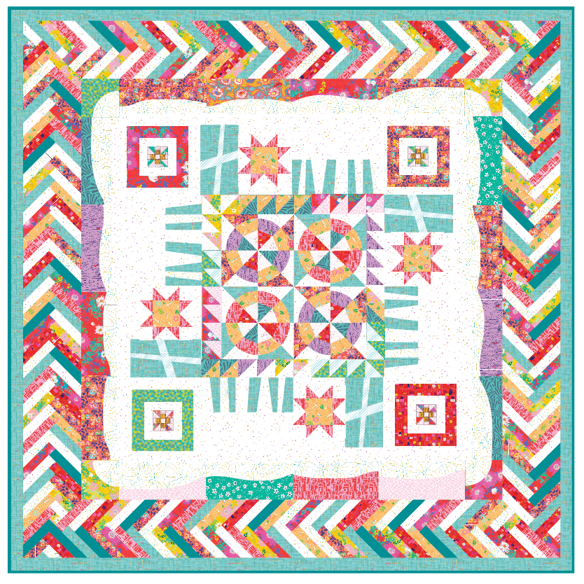 Fabric Kit: All the fabric for the quilt top as shown, binding, #6 Snack Set templates, and digital fabric chart to coordinate with online class.