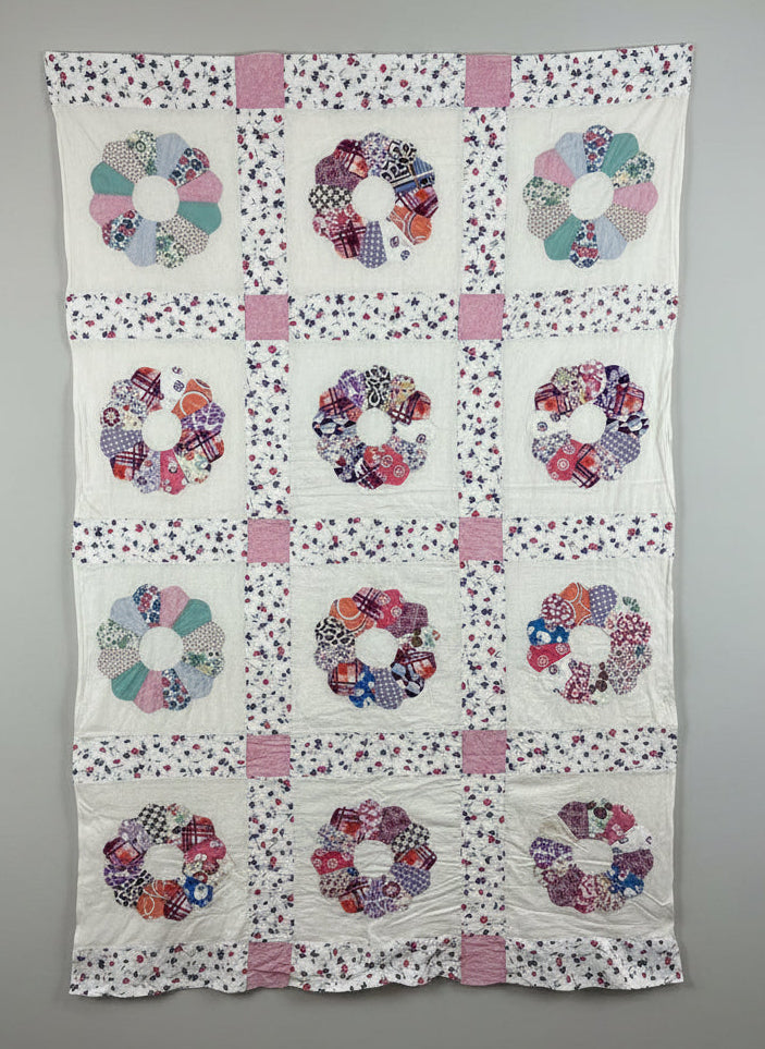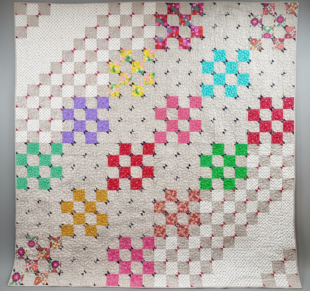 Size: 88" X 88"" Date: 2018 Cotton fabrics, Wool Batting Designed and Made by Victoria Findlay Wolfe, A Four Block version of Victoria's popular "Thunderstruck "Quilt pattern, in pink,...